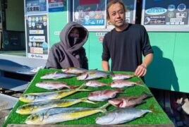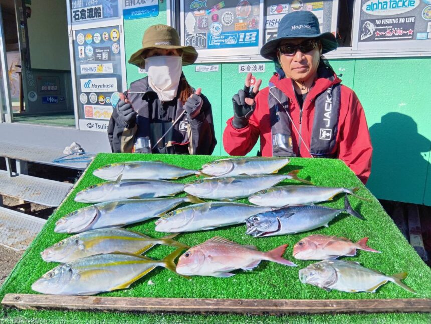 船外機ボートで大嶋さんがシマアジ、マダイ、ツバスをゲット。