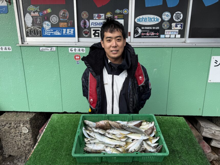 船外機ボートで加藤さんがシマアジ、マダイ、ツバス、イサキ、グレをゲット。