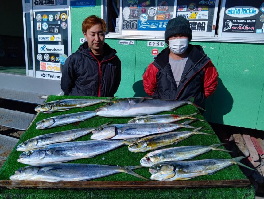 船外機ボートで宮地さんがワラサ、シイラをゲット。