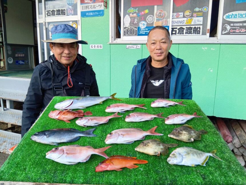 船外機ボートで小川さんがマダイ、ツバス、カワハギ、アカハタをゲット。
