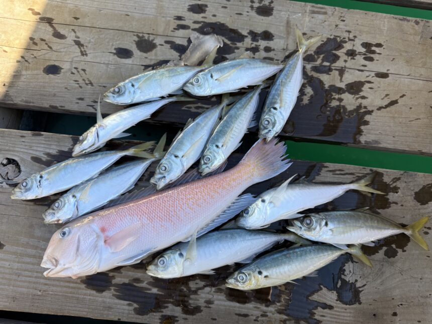 手漕ぎボートで西村さんがシロアマダイ、アジをゲット。