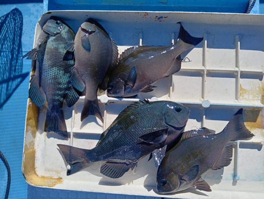 船外機ボートで北川さんがグレをゲット。