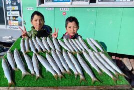 手漕ぎボートでたいせい君&かいり君がカマスをゲット。