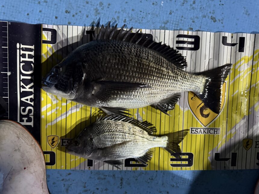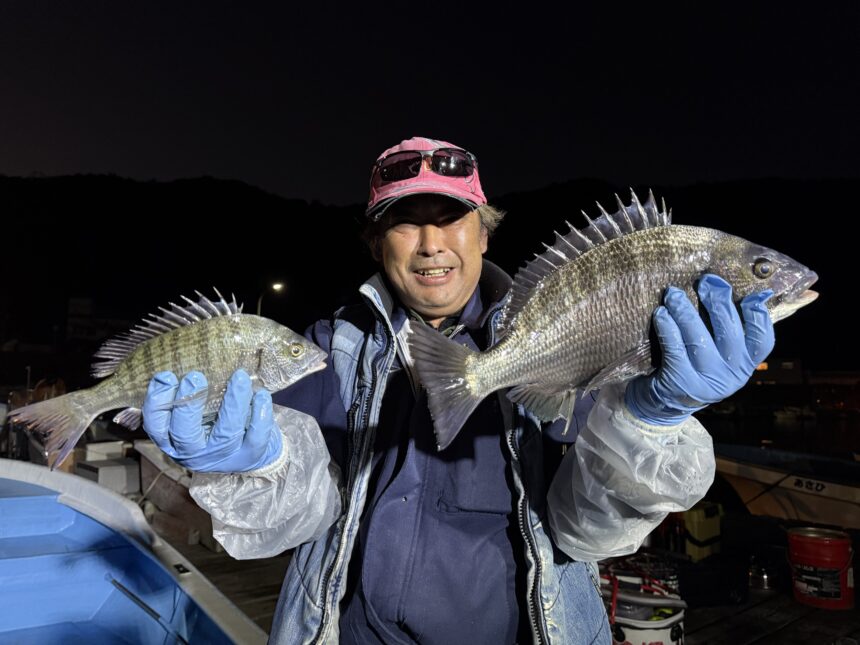 カセ釣りで大川さんがチヌ40㎝までゲット。