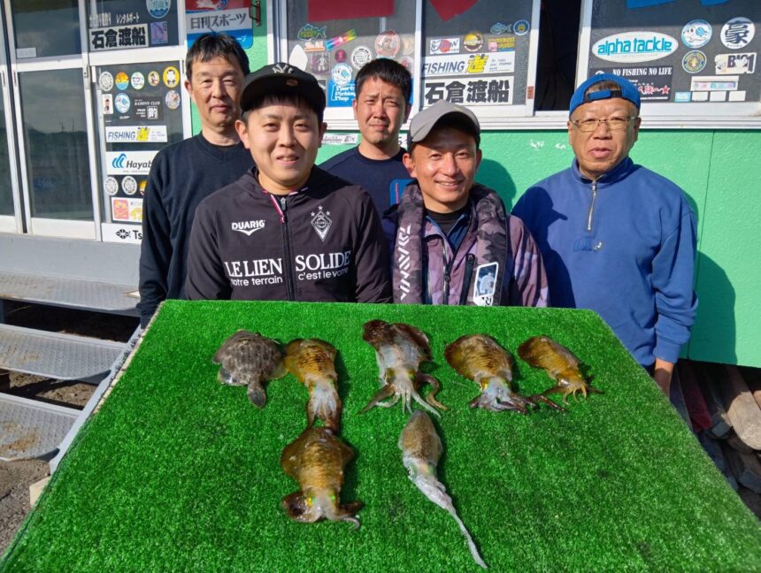 船外機ボートで高橋さんがカミナリイカをゲット。