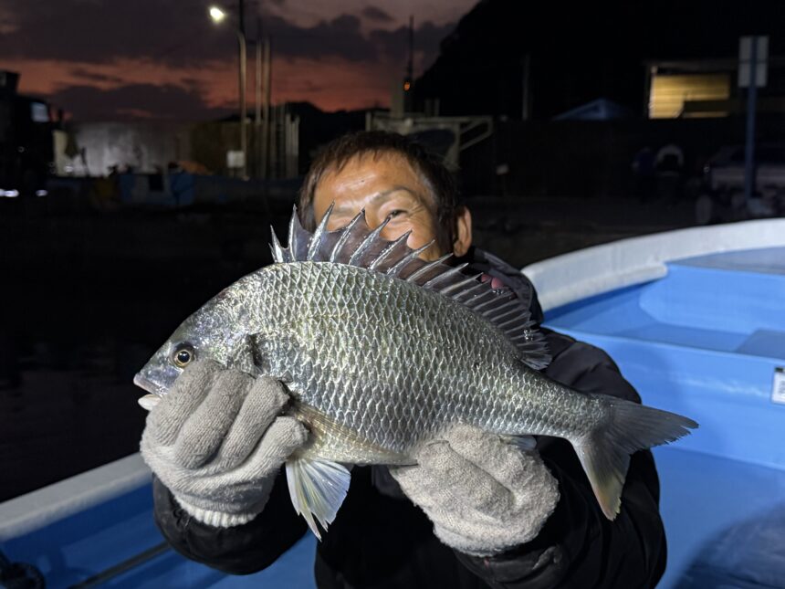 カセ釣りで大川さんがチヌ40㎝までゲット。