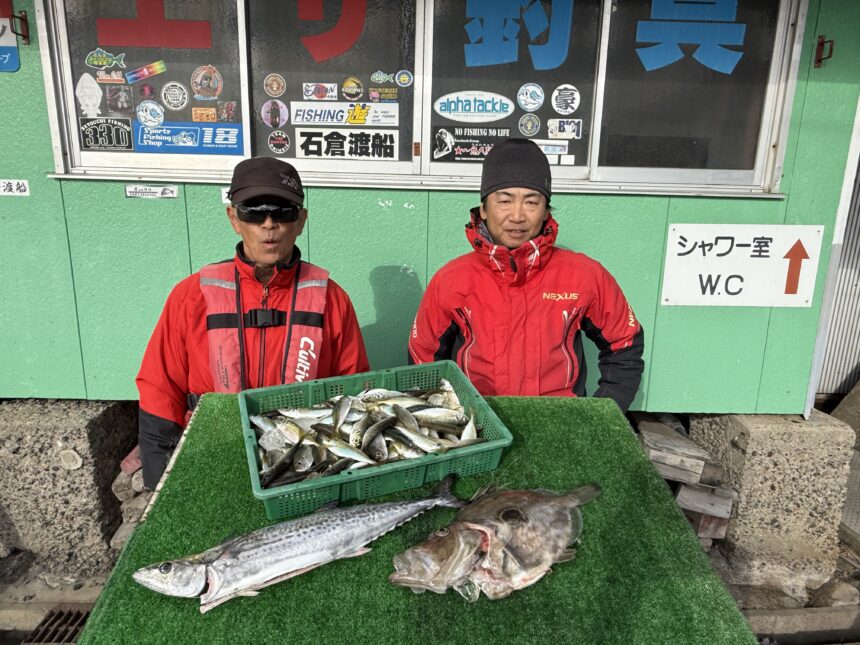 船外機ボートで大威さんがサゴシ、マトウダイ、アジをゲット。