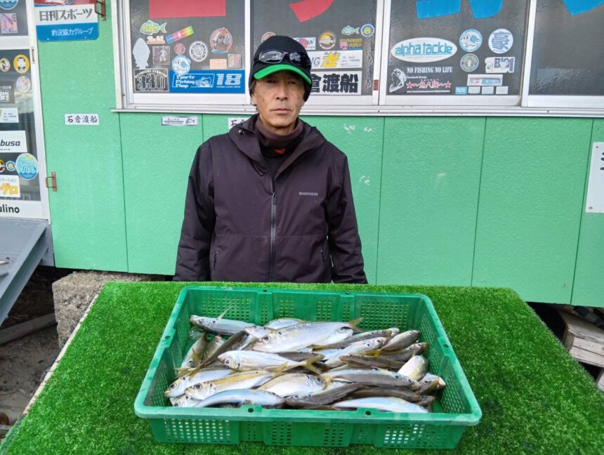 船外機ボートで野島さんがマゴチ、アジをゲット。