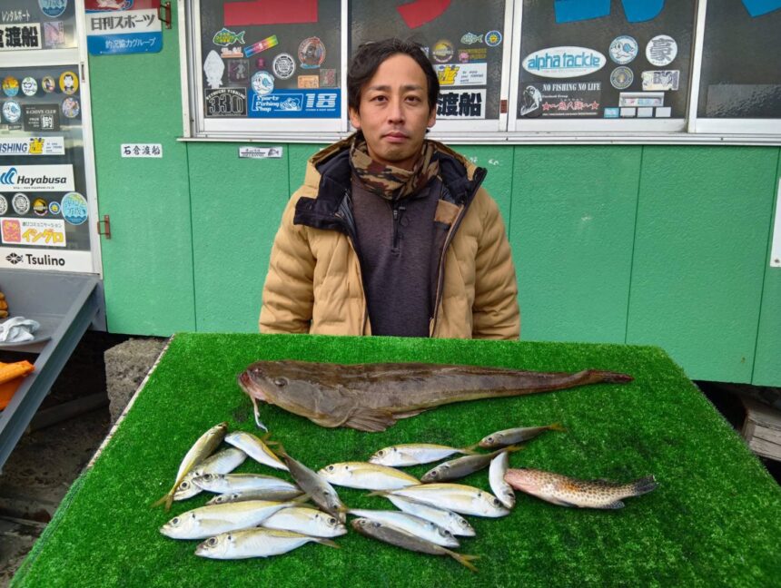 船外機ボートで野島さんがマゴチ、アジをゲット。