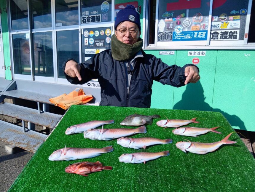 船外機ボートで加藤さんがシロアマダイ、イトヨリ、カワハギをゲット。