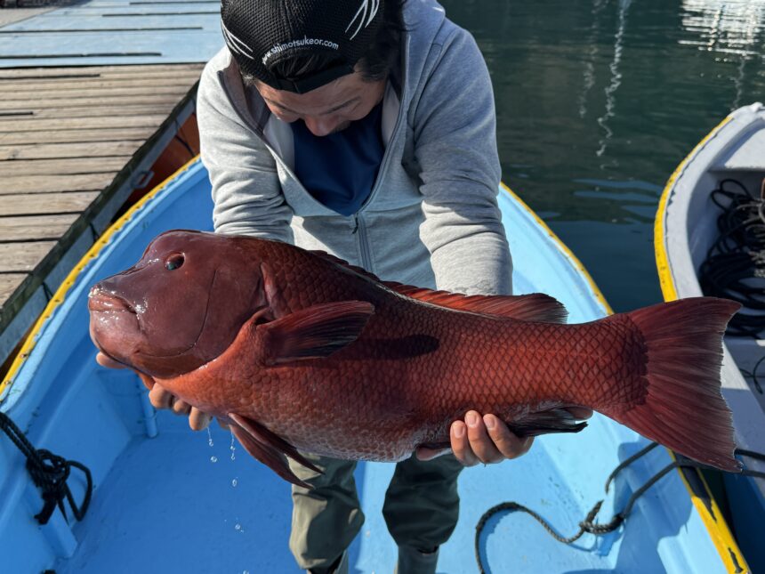船外機ボートで北川さんがカンダイをゲット。