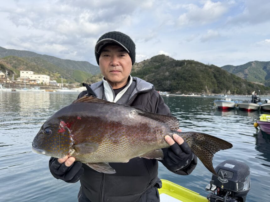 船外機ボートで濱野さんがイシダイをゲット。