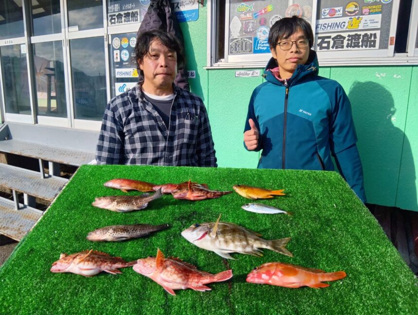 船外機ボートで三宅さんがアカハタ、カサゴ、オオモンハタ、メイチをゲット。