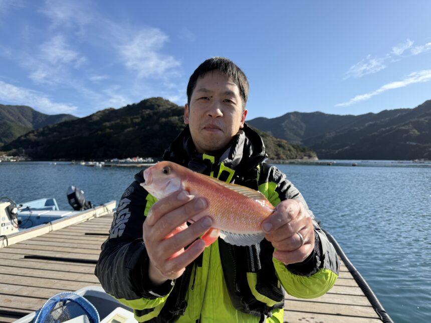 船外機ボートで新本さんがグレ、マダイ、オオモンハタをゲット。