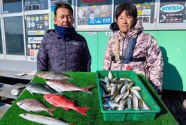 船外機ボートで岡本さんがマダイ、ヘダイをゲット。