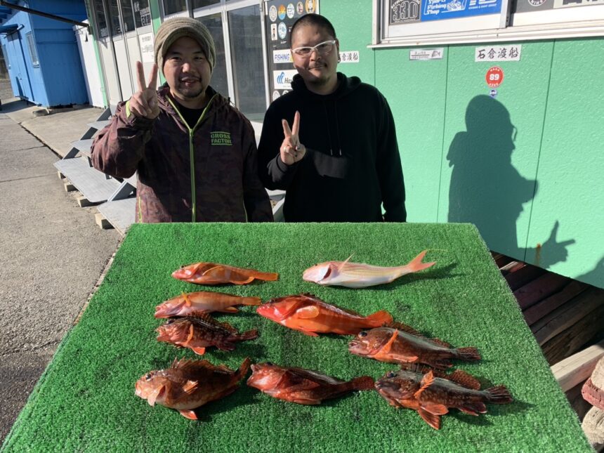 船外機ボートで鈴木さんがカサゴ、アカハタ、イトヨリをゲット。
