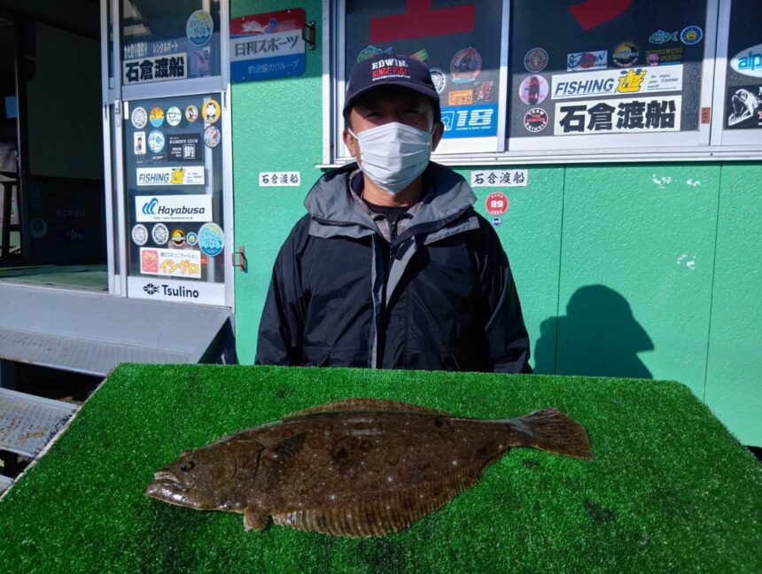 船外機ボートで加藤さんがヒラメをゲット。