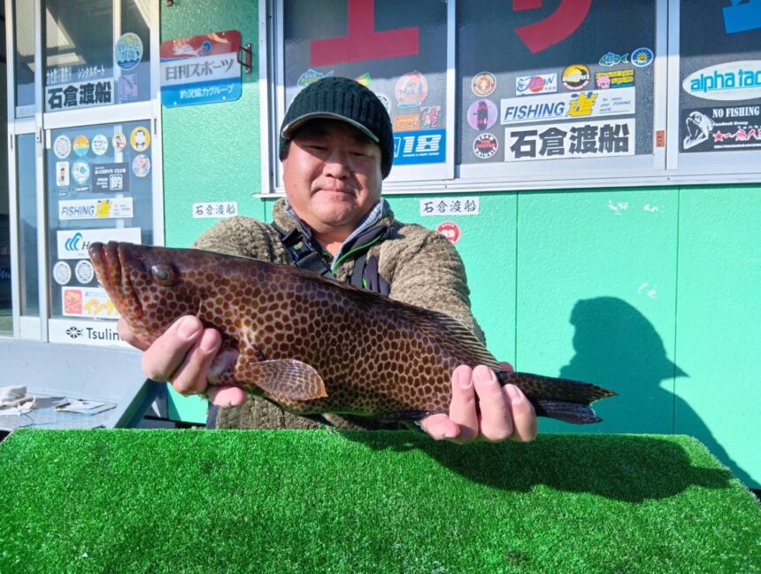 船外機ボートで倉田さんがオオモンハタをゲット。
