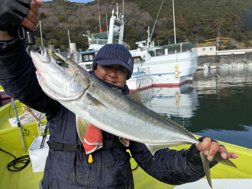 船外機ボートで寺田さんがワラサをゲット。