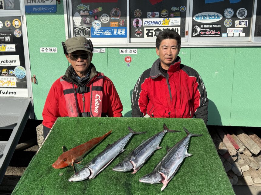 船外機ボートで大威さんがサゴシ、ホウボウをゲット。