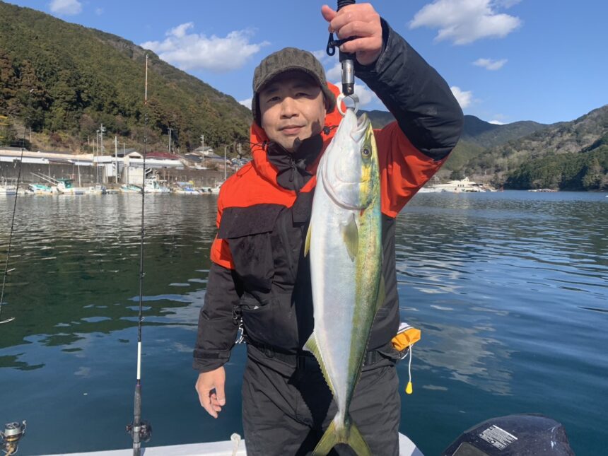 船外機ボートで市場さんがワラサをゲット。