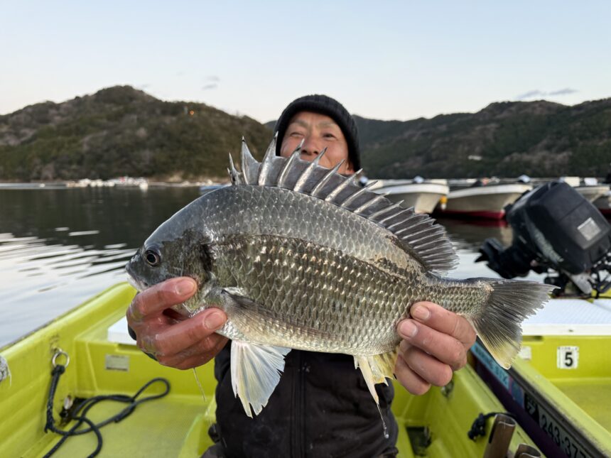 カセ釣りで村上さんがチヌ41㎝をゲット。