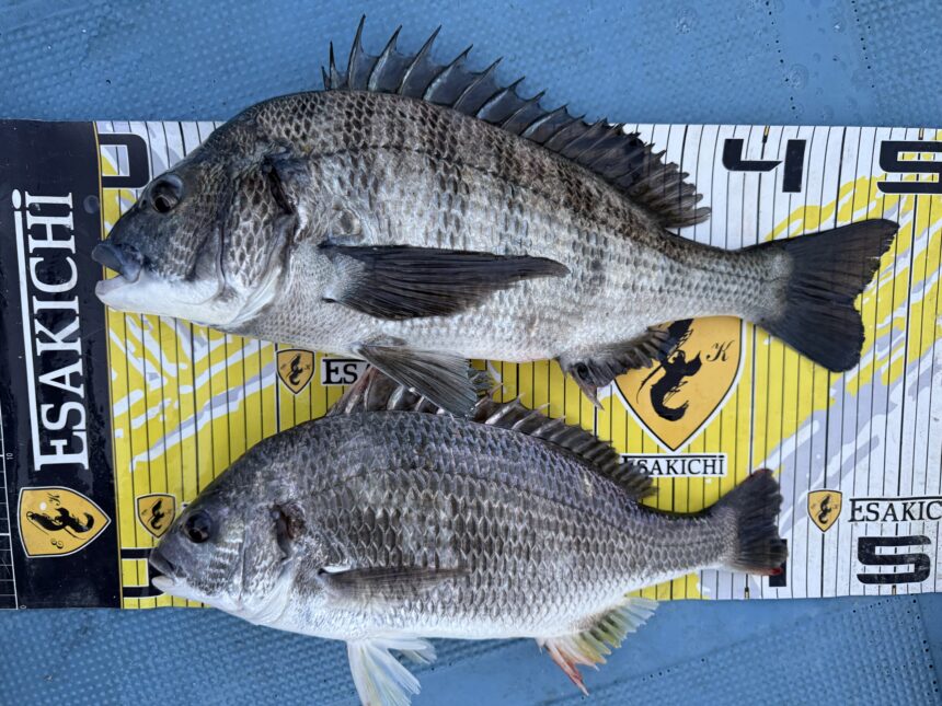 カセ釣りで村上さんがチヌ41㎝をゲット。