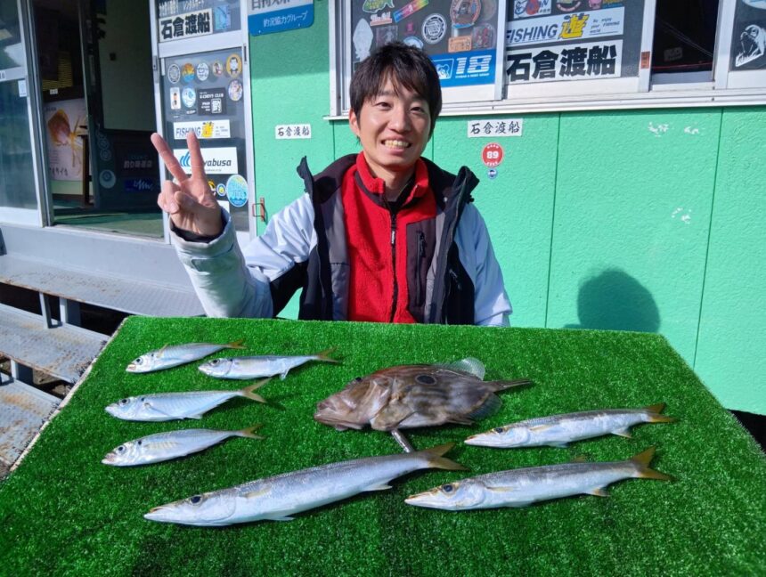 手漕ぎボートで斉木さんがアジ、カマスをゲット。