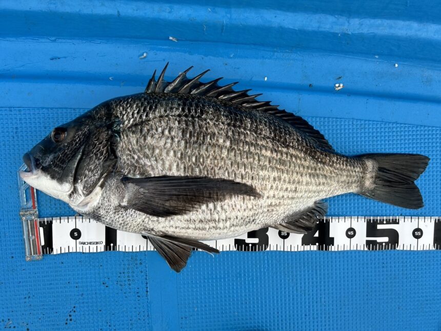 カセ釣りで青木さんがチヌ57㎝をゲット。