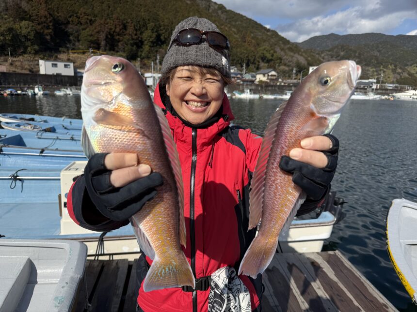 船外機ボートで北方さんがシロアマダイをゲット。