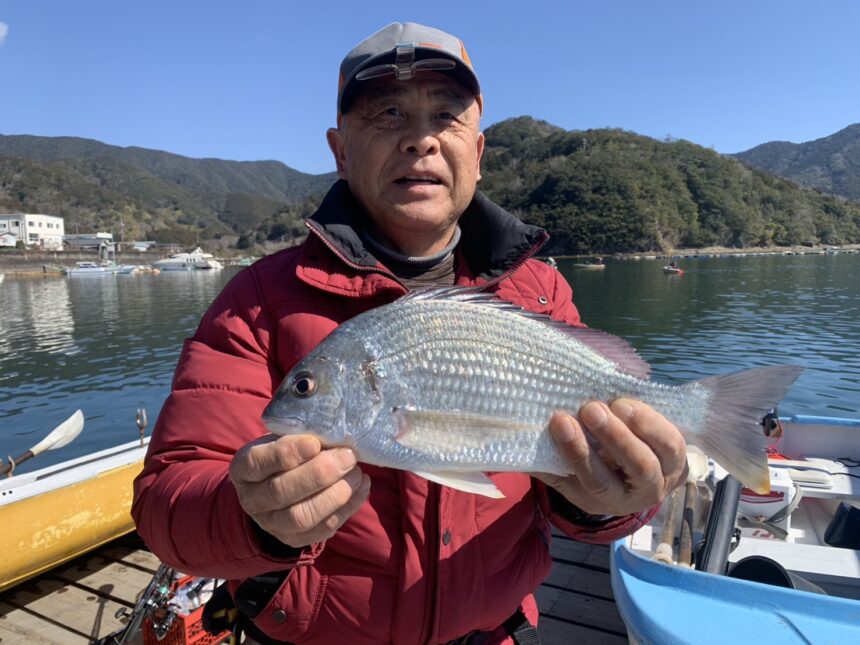 船外機ボートで石井さんがマダイ、カサゴをゲット。