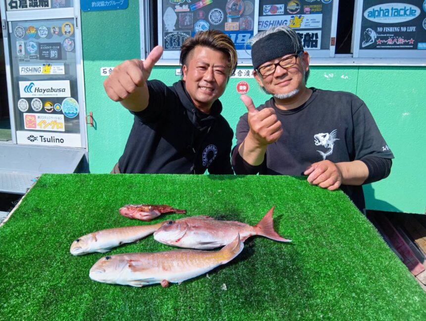 船外機ボートで進士さんがシロアマダイ、マダイ、カサゴをゲット。