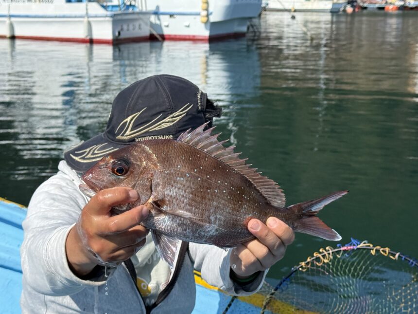 船外機ボートで高木さんがマダイ、カイワリ、ガンゾウヒラメをゲット。