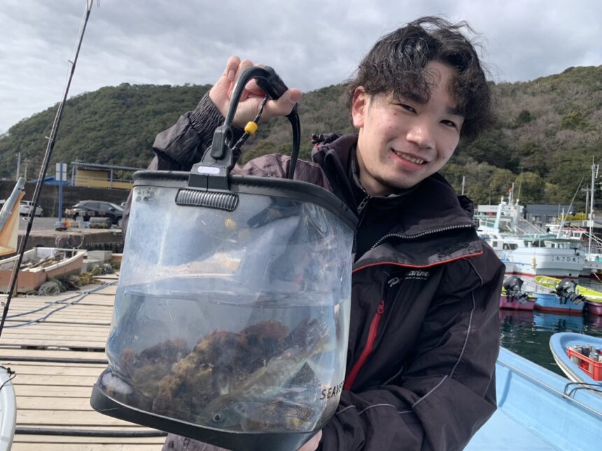 手漕ぎボートで中田さんがカサゴをゲット。