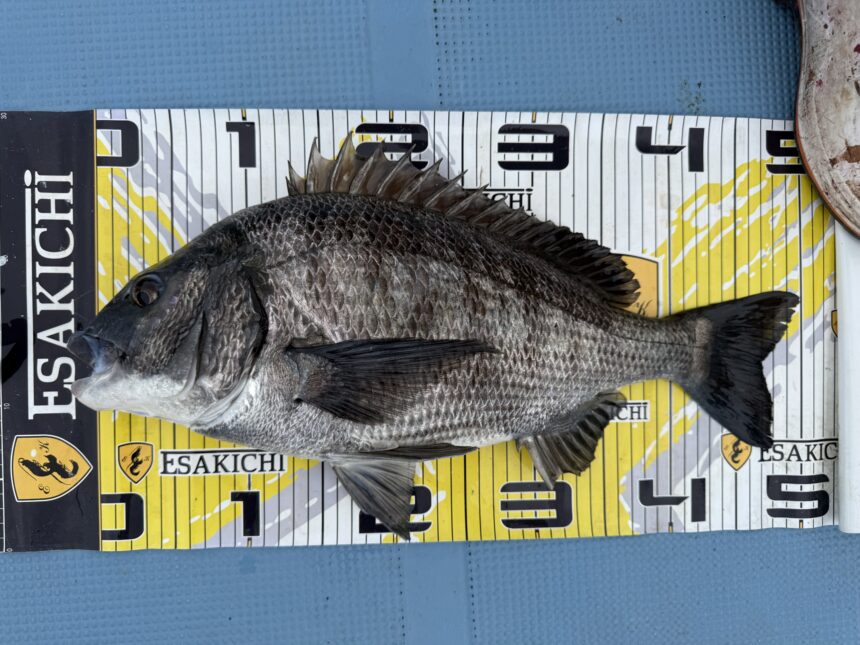 カセ釣りでしんちゃんがチヌをゲット。