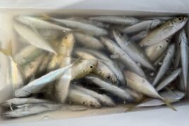 手漕ぎボートで岡崎さんがアオリイカ、アジをゲット。