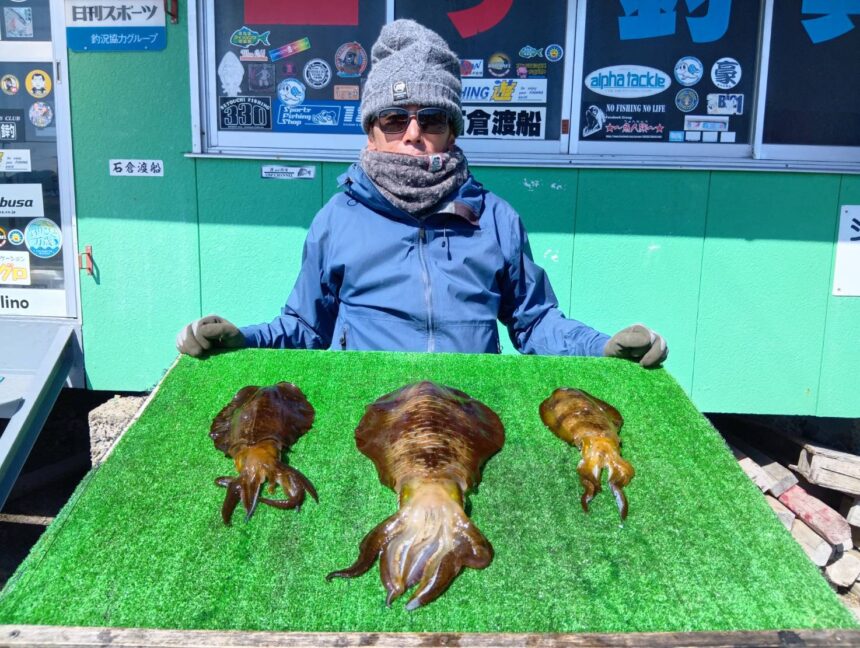 船外機ボートで小山さんがアオリイカ1.42キロまでゲット。