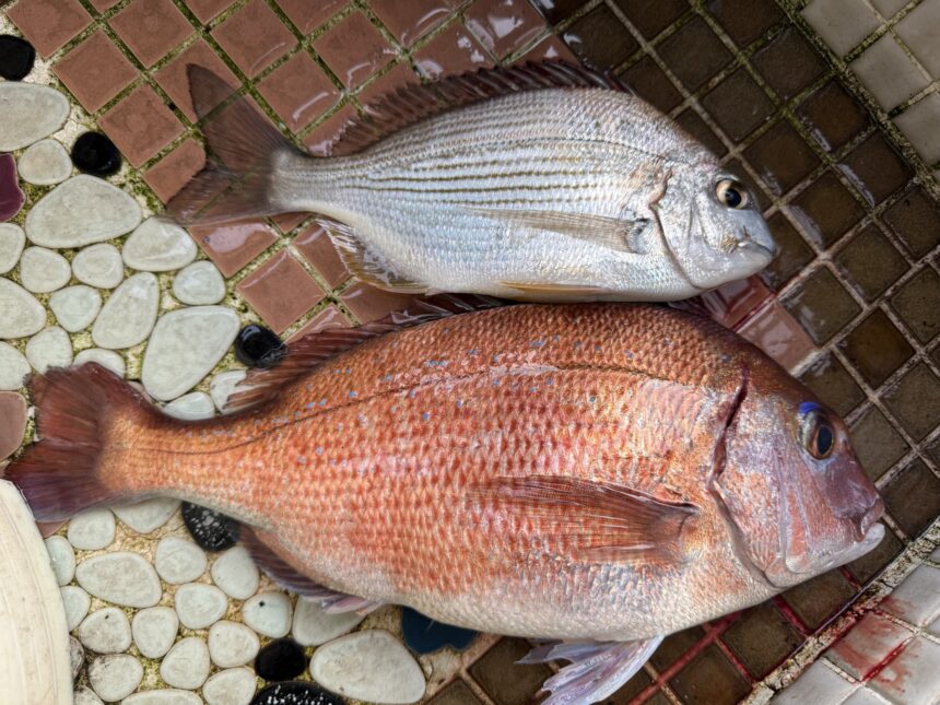 カセ釣りで樋口さんがマダイ、ヘダイをゲット。