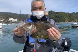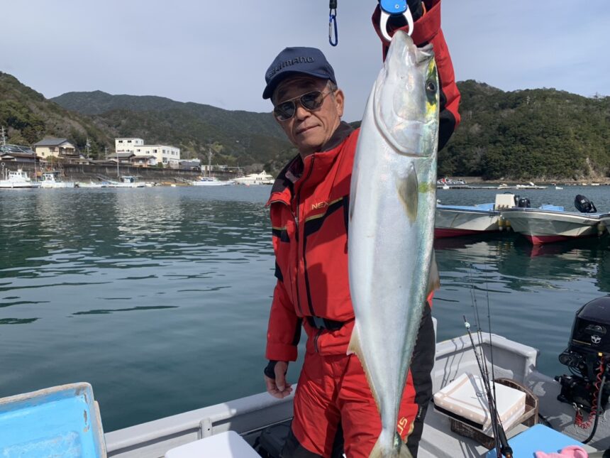 船外機ボートで小池さんがワラサ、クエをゲット。
