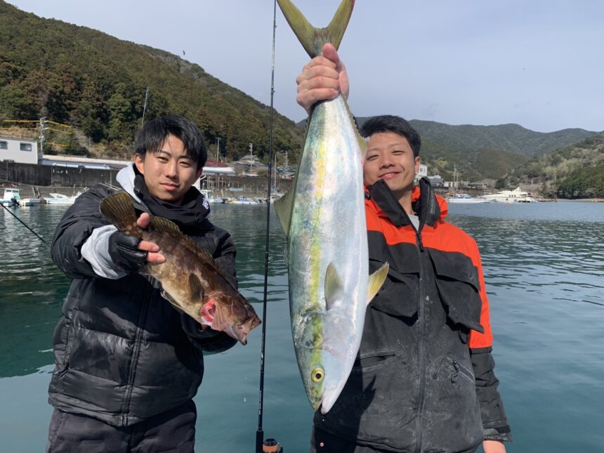 船外機ボートで小池さんがワラサ、クエをゲット。
