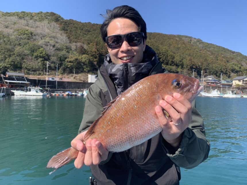 船外機ボートで生駒さんがマダイをゲット。
