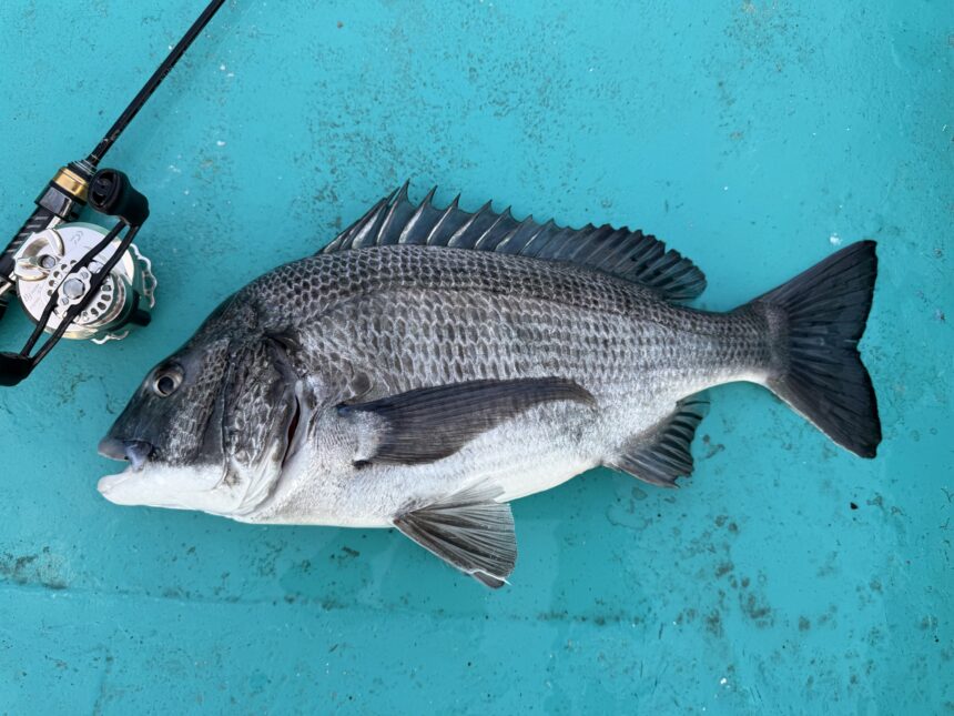 カセ釣りで樋口さんがマダイ、ヘダイをゲット。