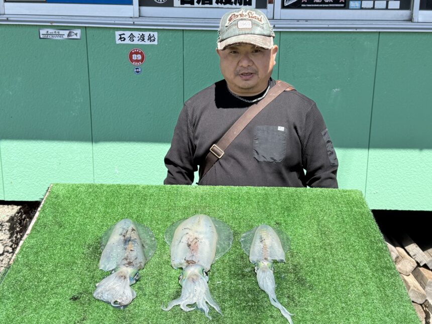 船外機ボートで中島さんがアオリイカ700gまでゲット。