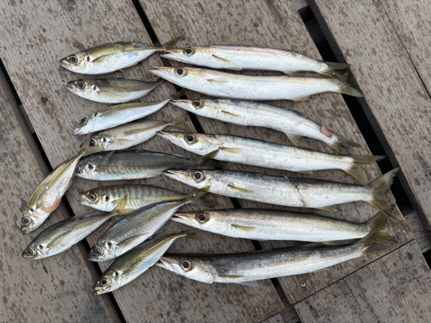 手漕ぎボートで水谷さんがカマス、アジをゲット。