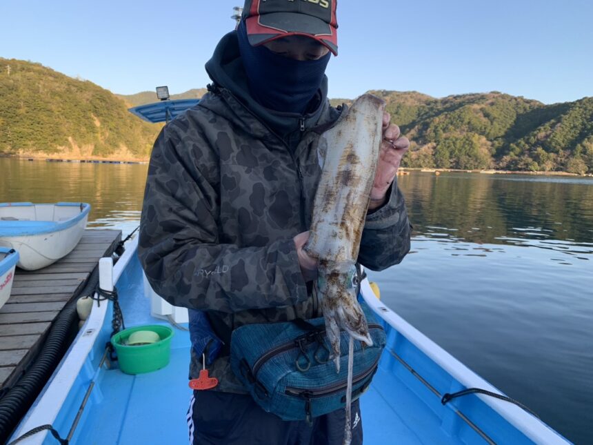 カセ釣りです宮坂さんがアオリイカをゲット。
