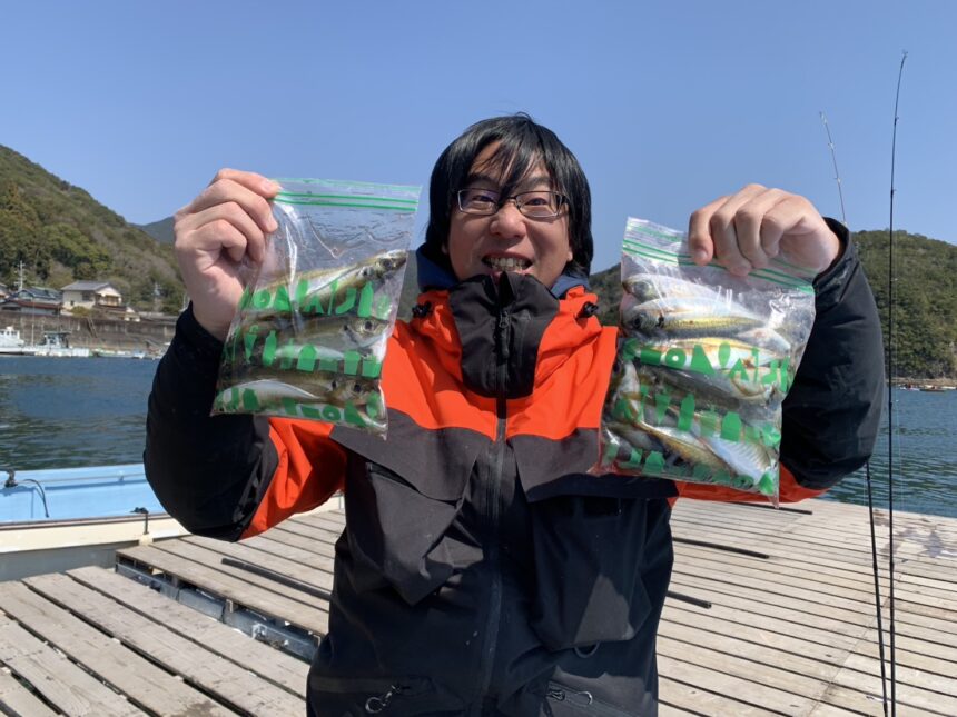 カセ釣りで徳田さんがアジをゲット。