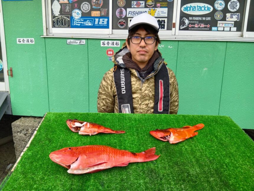 船外機ボートで北川さんがマダイ、イサキ、グレをゲット。