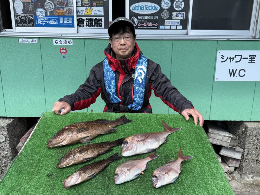 船外機ボートで北川さんがマダイ、イサキ、グレをゲット。