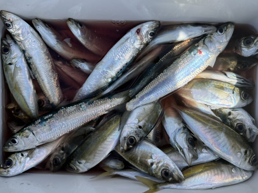 手漕ぎボートで井原さんがアジ&マイワシをゲット。