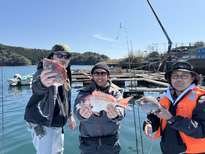 船外機ボートで深野さんがマダイ&カワハギをゲット。